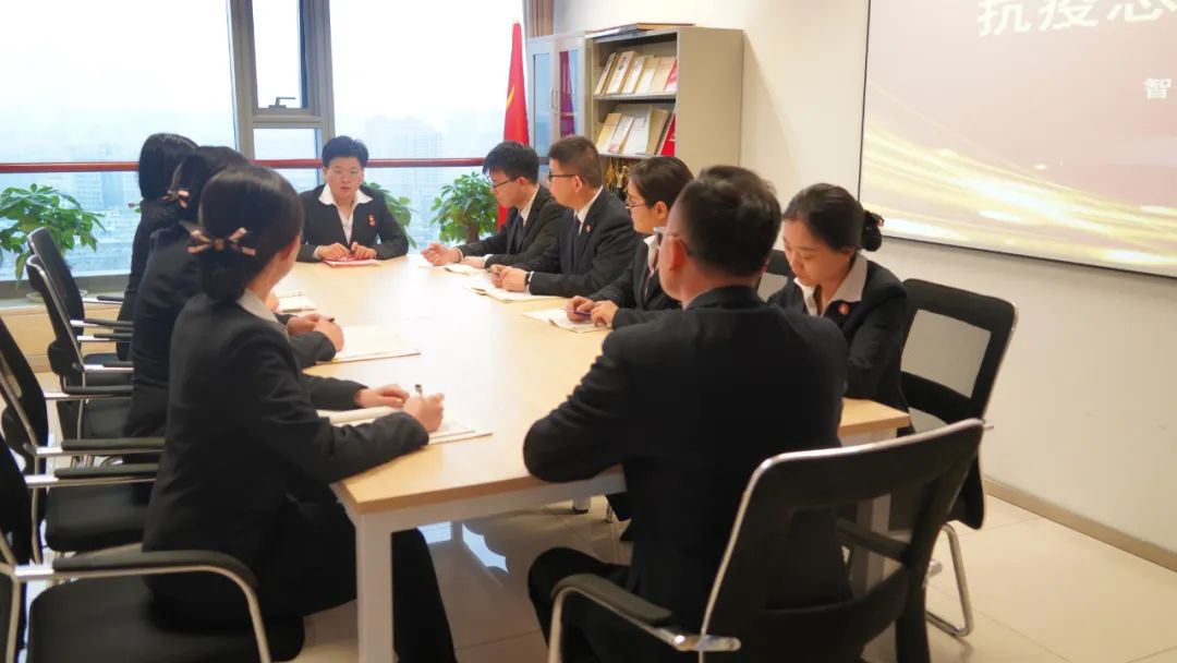 3月18日,大智組織抗疫志愿服務動員會,集團黨委書記王現(xiàn)芹、團委副書記昌舉岡為即將前往一線的志愿者們加油打氣。