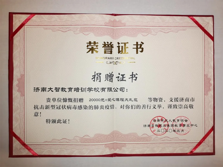 據(jù)悉,本次活動捐贈的課程面向濟南市奔赴武漢的一線醫(yī)護人員及社區(qū)一線防疫人員子女免費發(fā)放,善款用于“春暖花開”公益項目啟動基金及購買口罩面向濟南市參與抗疫活動學(xué)生群體發(fā)放。
