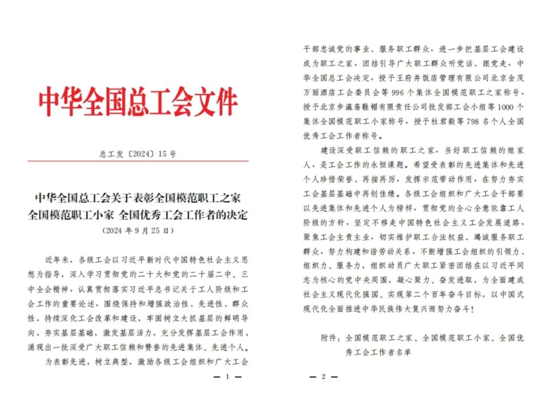近日,中華全國(guó)總工會(huì)發(fā)布《關(guān)于表彰全國(guó)模范職工之家 全國(guó)模范職工小家 全國(guó)優(yōu)秀工會(huì)工作者的決定》(總工發(fā)〔2024〕15號(hào)),山東大智控股集...