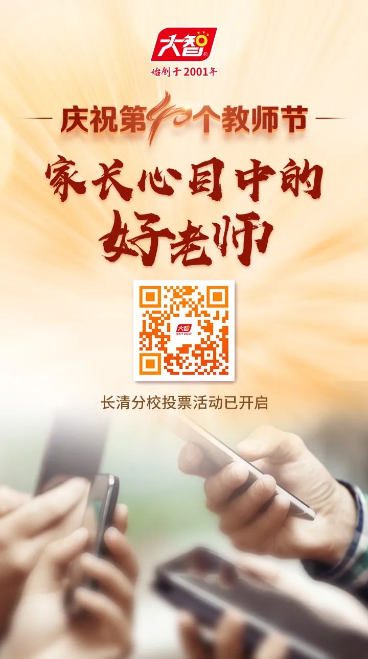 為慶祝第40個(gè)教師節(jié),通過選樹典型、表彰優(yōu)秀,持續(xù)提升教育教學(xué)質(zhì)量,服務(wù)更多學(xué)生,大智發(fā)起"家長(zhǎng)心目中的好老師"評(píng)選活動(dòng),歡迎各位家長(zhǎng)朋友為分校的老師們投出寶貴的一票,這一票既是您對(duì)我們工作的肯定,也是一份鼓勵(lì),我們將帶著這份信任在高質(zhì)量育人道路上持續(xù)提升。