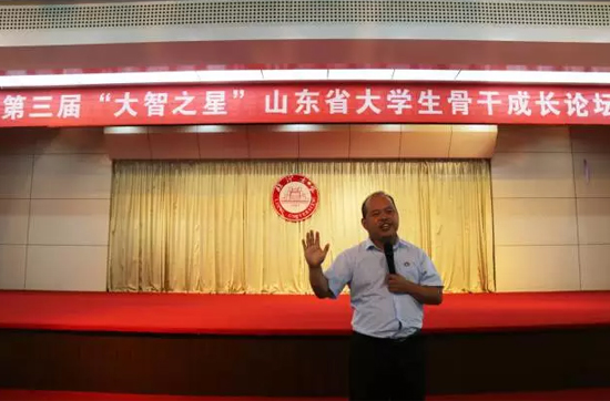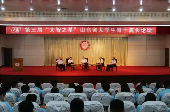 07月20日,由共青團(tuán)山東省委、山東省學(xué)生聯(lián)合會(huì)主辦,山東大智控股集團(tuán)股份有限公司承辦的第三屆“大智之星”山東省大學(xué)生骨干成長(zhǎng)論壇在臨沂大學(xué)成功舉辦,共青團(tuán)山東省委學(xué)校部副部長(zhǎng)陳玉娟、21世紀(jì)教育研究院副院長(zhǎng)、著名教育時(shí)評(píng)家熊丙奇、山東大學(xué)文學(xué)與新聞傳播學(xué)院副院長(zhǎng)、美國(guó)密蘇里大學(xué)品牌傳播學(xué)博士后劉悅坦、山東大智控股集團(tuán)股份有限公司副總裁、首席教學(xué)官?gòu)埮蟪鱿搲?,?lái)自山東省各高校120名學(xué)生會(huì)主席共同參會(huì)并認(rèn)真學(xué)習(xí)。
