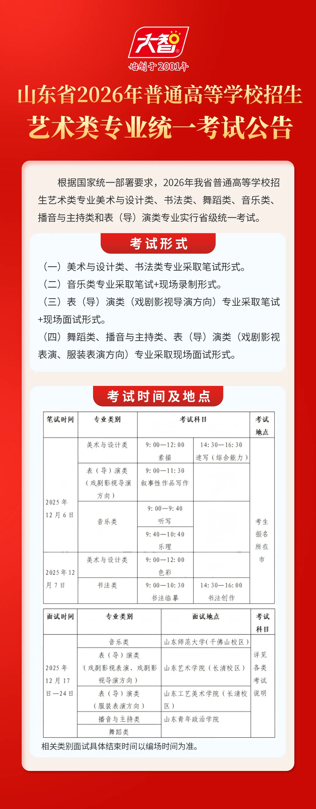 山東省2026年普通高等學(xué)校招生藝術(shù)類專業(yè)統(tǒng)一考試成績查詢查詢時(shí)間1月18日中午12:00查詢方式關(guān)注濟(jì)南大智教育公眾號(hào)濟(jì)南大智教育大智專注...