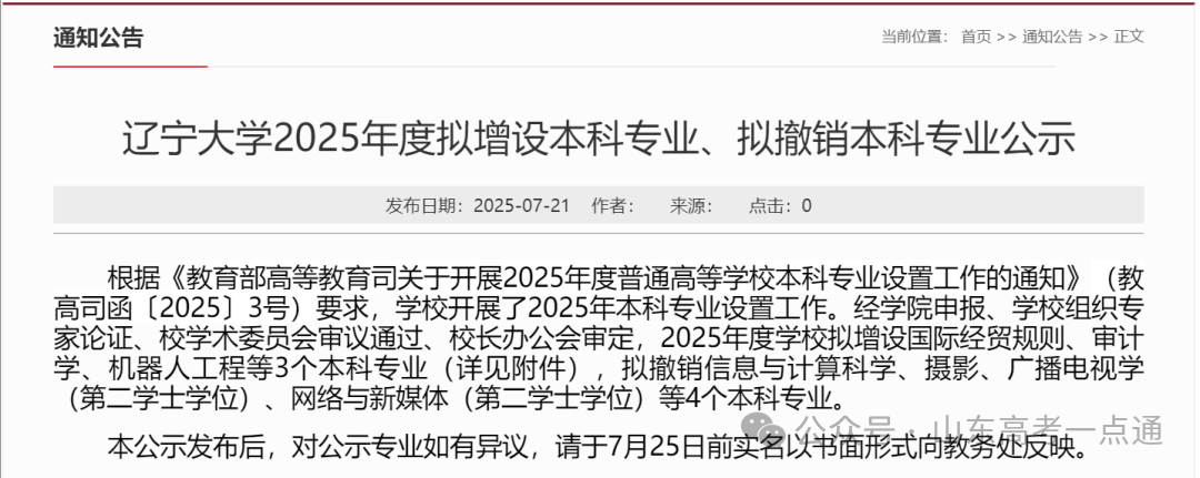近日,遼寧大學、福建師范大學、江西農(nóng)業(yè)大學、西安郵電大學相繼發(fā)布關(guān)于2025年度調(diào)整本科專業(yè)情況的公示。遼寧大學7月21日,遼寧大學發(fā)布《2...
