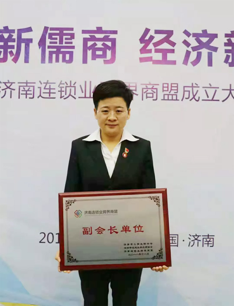 大智控股集團黨委書記、副總裁王現(xiàn)芹應(yīng)邀參會。會上,大智控股集團被授予“濟南連鎖業(yè)跨界商盟副會長單位”。