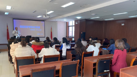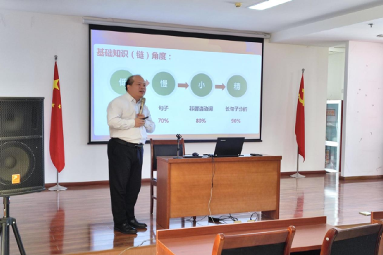 培訓(xùn)中,張朋從理論和實踐兩個層面對威海四中“低、慢、小、精”的課改理念和“三個中心”課改原則進(jìn)行深刻剖析:理論層面從基礎(chǔ)知識(鏈)角度、基礎(chǔ)題型(鏈)角度、基本能力(鏈)角度論證了“低、慢、小、精”課改理念的合理性和科學(xué)性;實踐層面基于威海四中學(xué)情和自身經(jīng)驗,從“基礎(chǔ)知識認(rèn)知弱、基本題型缺定法、基本能力憑感覺、語言態(tài)度糾偏少、寫作從無范文感”五大維度論證學(xué)?!皞湔n以學(xué)生為中心、上課以活動為中心、作業(yè)以雙基為中心”課改實踐原則的合理性和科學(xué)性。