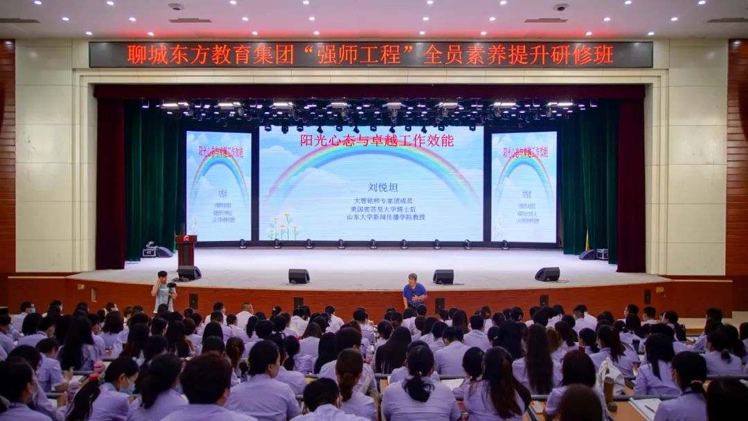 7月11日,聊城市東方教育集團“強師工程”之全員素養(yǎng)提升研修班開班典禮在聊城東方教育集團報告廳舉行。聊城市東方教育集團董事長趙以濤,聊城東方教育集團副董事長、行政校長馬成虎,聊城東方教育集團副董事長、業(yè)務(wù)校長、東方中學(xué)校長、集團教研室主任王曉虎,聊城東方教育集團副董事長、辦公室主任付博,聊城東方教育集團副董事長、人力資源部主任、黨建辦公室主任劉佳,山東大學(xué)文學(xué)與新聞傳播學(xué)院教授、博士生導(dǎo)師、中國最勵志教授劉悅坦,大智銘師負責(zé)人張朋,大智銘師項目部負責(zé)人徐西路等出席開班典禮,大智銘師教學(xué)部黃遠福主持典禮。