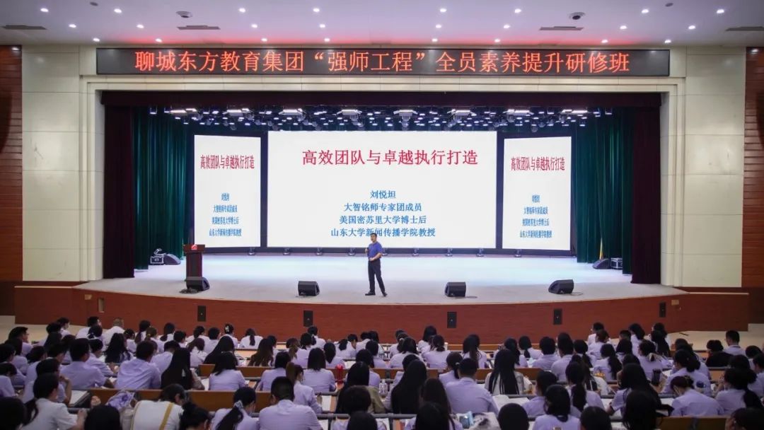 隨著基礎(chǔ)教育改革的不斷深入,對教師的素質(zhì)素養(yǎng)提出了更高的要求,為切實提升聊城東方教育集團教師團隊解決實際問題的能力,提高團隊執(zhí)行力,山東大學(xué)文學(xué)與新聞傳播學(xué)院教授、博士生導(dǎo)師,中國最勵志教授劉悅坦教授帶來《高效團隊與卓越執(zhí)行打造》主題分享。
