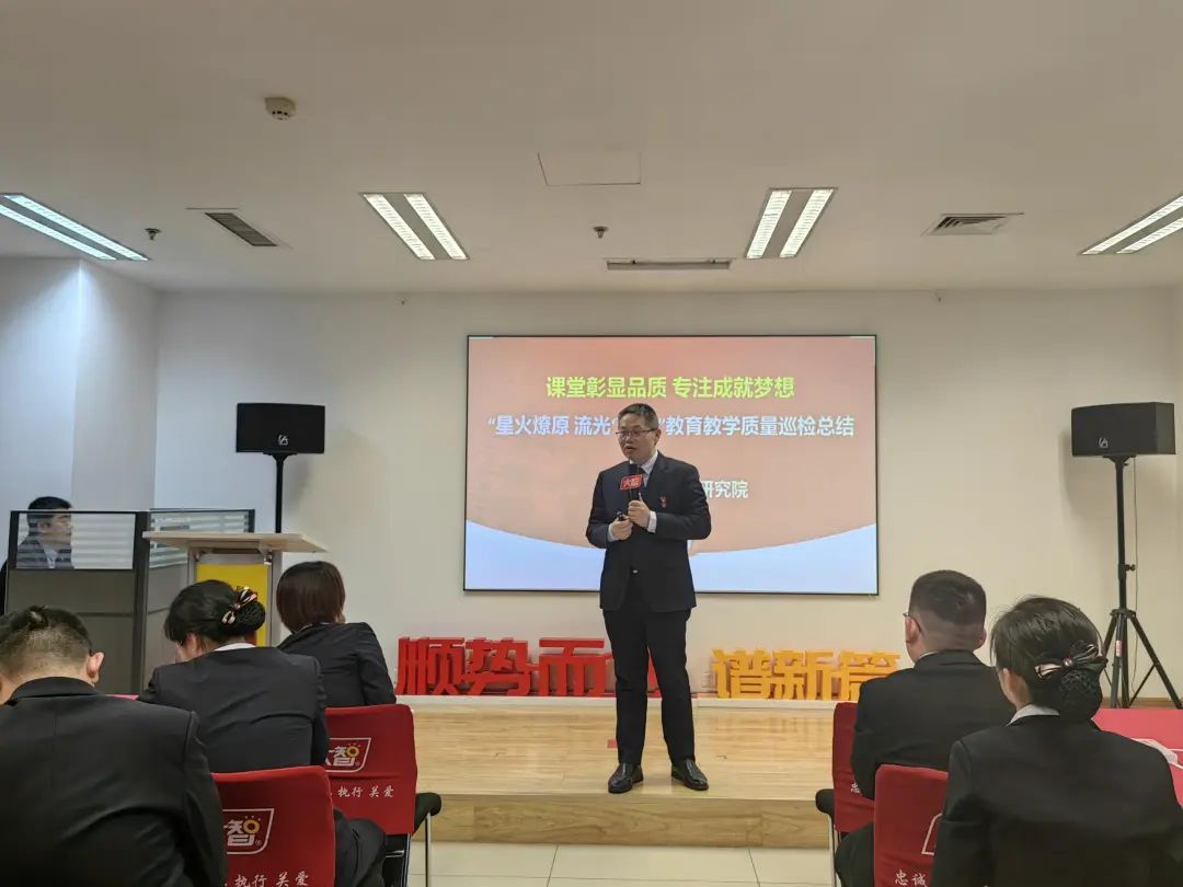 總結(jié)會(huì)中,兩位督導(dǎo)小組長(zhǎng)圍繞教研常規(guī)、數(shù)據(jù)等進(jìn)行了整體通報(bào)。在本次督導(dǎo)行動(dòng)中,學(xué)科服務(wù)所所長(zhǎng)分組走進(jìn)全部開(kāi)課分校,實(shí)地檢查教研常規(guī),深入組織課堂診斷。教學(xué)管理各有特色,站立早讀、顧問(wèn)全程跟課、分階段通關(guān)等;課堂活動(dòng)各有亮點(diǎn),課前熱身活動(dòng)充分調(diào)動(dòng),課中即時(shí)反饋、過(guò)程性評(píng)價(jià),課后解疑答惑、逐個(gè)反饋等。發(fā)現(xiàn)優(yōu)秀、樹(shù)立榜樣,全面助力于每一位大智學(xué)子提升。