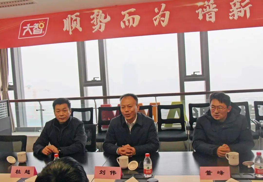 劉偉一行將一面印有“心系家鄉(xiāng)顯真情 攜手共謀新發(fā)展”的錦旗送到張維東董事長手中,感謝大智及張維東董事長為雙泉經(jīng)濟社會發(fā)展作出的積極貢獻,并進行座談交流。