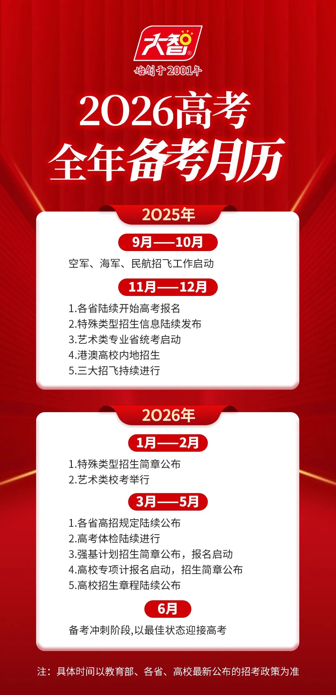 步入新學期,高考的戰(zhàn)鼓也悄然擂響,高三學年有哪些重要時間節(jié)點需要關注?2026年高考全年備考月歷來啦~