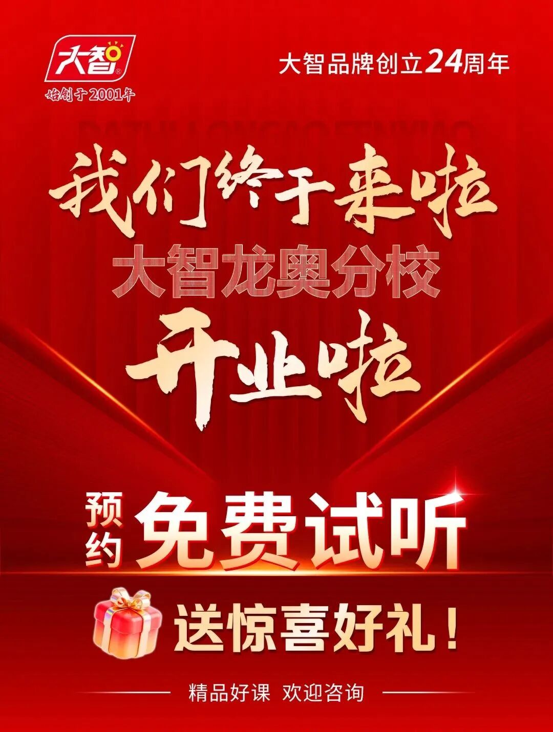 2025年,是大智品牌創(chuàng)立24周年。24年來,大智始終以“為黨育人 為國育才”為己任,秉承“視學(xué)生為親人 視家長為家人”的育人理念,持續(xù)提升...
