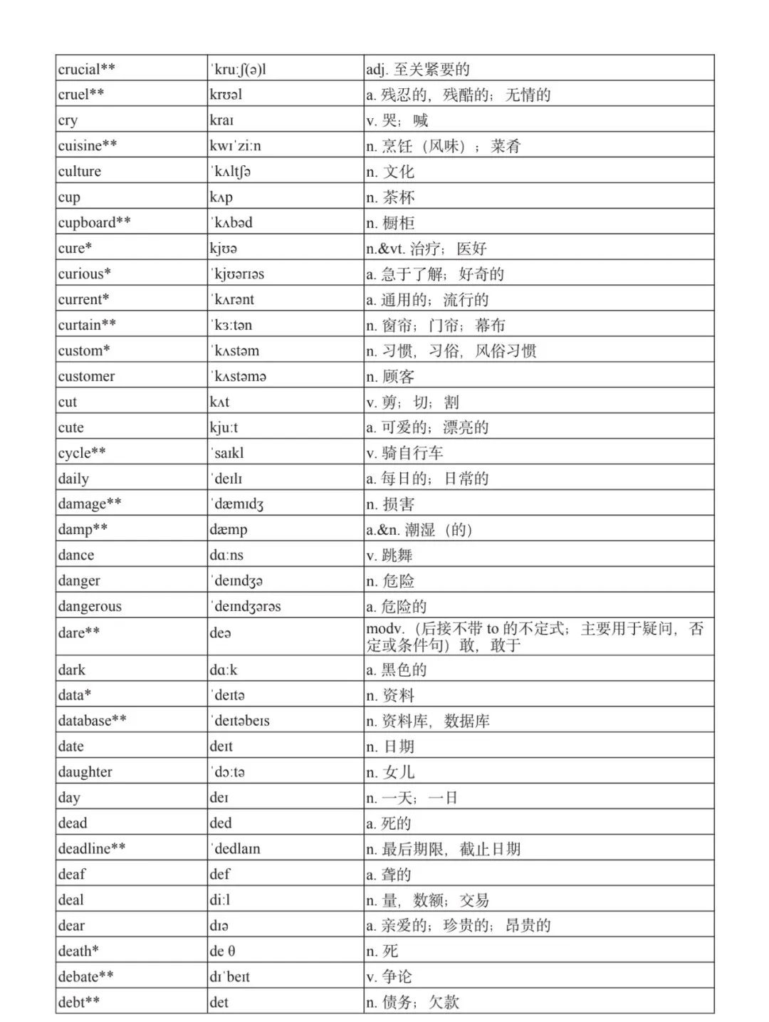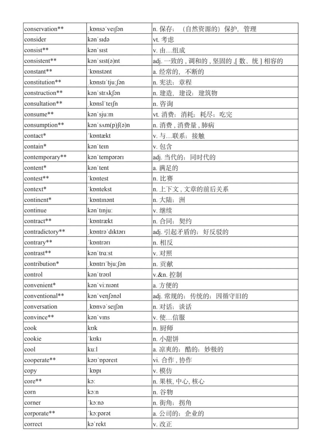 本詞匯表不列可根據(jù)構(gòu)詞法推導(dǎo)出的部分名詞、形容詞、副詞等。