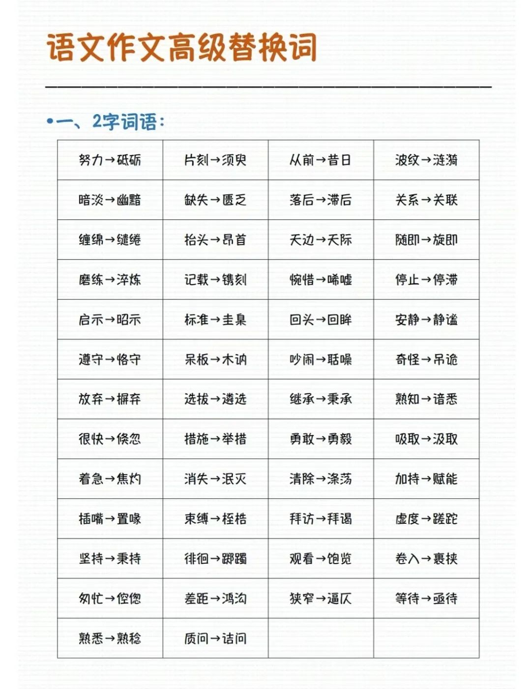 語文作文高級替換詞▍ 聲明:本文整理自網絡,如有侵權,請聯(lián)系刪除。