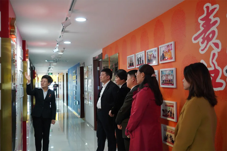 王現(xiàn)芹帶領(lǐng)大家參觀了大智黨建長(zhǎng)廊,并詳細(xì)介紹了“智惠黨建一三九”工作模式、黨建引領(lǐng)下的大智“一帶一促”群團(tuán)建設(shè)理念,以及“智惠+”群團(tuán)建設(shè)模式。