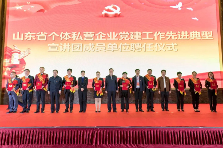 近日,全省個(gè)體私營(yíng)企業(yè)黨建先進(jìn)典型宣講暨現(xiàn)場(chǎng)觀摩會(huì)議在泰安舉行。山東省市場(chǎng)監(jiān)管局黨組書(shū)記、局長(zhǎng)侯成軍等省市場(chǎng)監(jiān)管局主要領(lǐng)導(dǎo),泰安政府主要領(lǐng)導(dǎo)、各市局主要領(lǐng)導(dǎo)及個(gè)體私營(yíng)企業(yè)主要負(fù)責(zé)人300余人參加現(xiàn)場(chǎng)會(huì)議。各市局分管領(lǐng)導(dǎo)等單位負(fù)責(zé)人3000多人參加視頻會(huì)議。會(huì)議現(xiàn)場(chǎng),山東大智控股集團(tuán)黨委書(shū)記王現(xiàn)芹做了以《智惠黨建引領(lǐng)發(fā)展》為主題的典型宣講,大智控股集團(tuán)黨委被聘任為“山東省個(gè)體私營(yíng)企業(yè)黨建工作先進(jìn)典型宣講團(tuán)成員單位”。