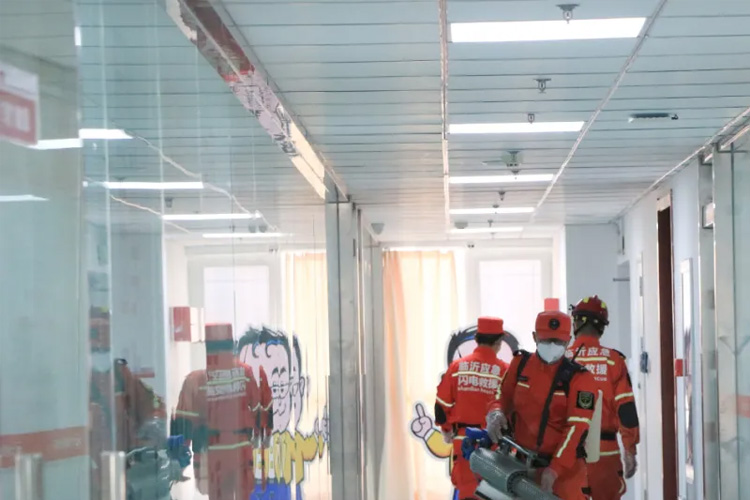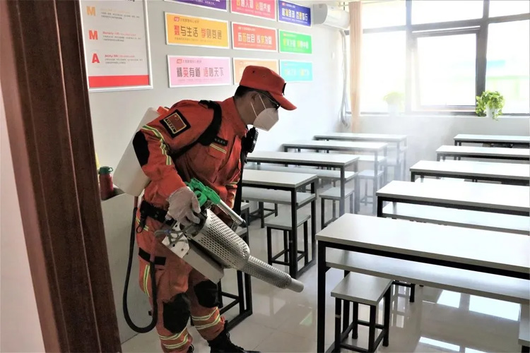 活動中,王京鋒隊長帶領(lǐng)隊員們走進大智臨沂區(qū)域四所分校逐一開展了全方位、無死角的消殺作業(yè),保障學(xué)員上課環(huán)境的安全性。