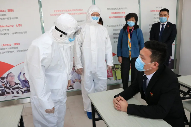 演練開始前,閃電救援隊首先給臨沂區(qū)域教職員工詳細培訓(xùn)了疫情突發(fā)事件應(yīng)急處理知識,幫助大家明確了疫情防控的規(guī)范程序。