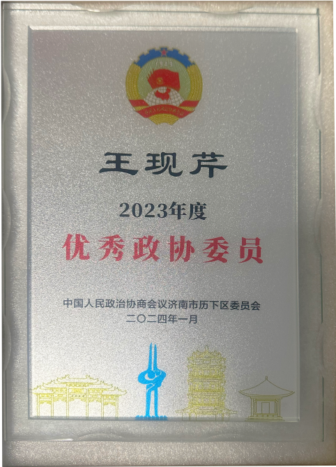 現(xiàn)場(chǎng),王現(xiàn)芹榮獲“2023年度優(yōu)秀政協(xié)委員”“助力招商引資特別貢獻(xiàn)獎(jiǎng)”。