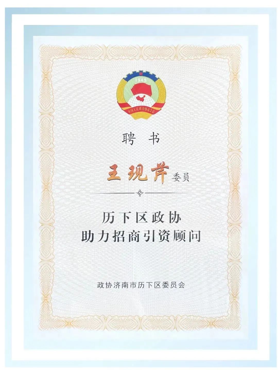 大智黨委書(shū)記王現(xiàn)芹被聘為“歷下區(qū)政協(xié)助力招商引資顧問(wèn)”