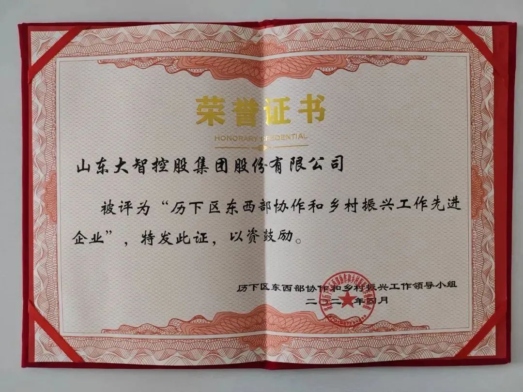 大智被評(píng)為“濟(jì)南市歷下區(qū)東西部協(xié)作和鄉(xiāng)村振興工作先進(jìn)企業(yè)”