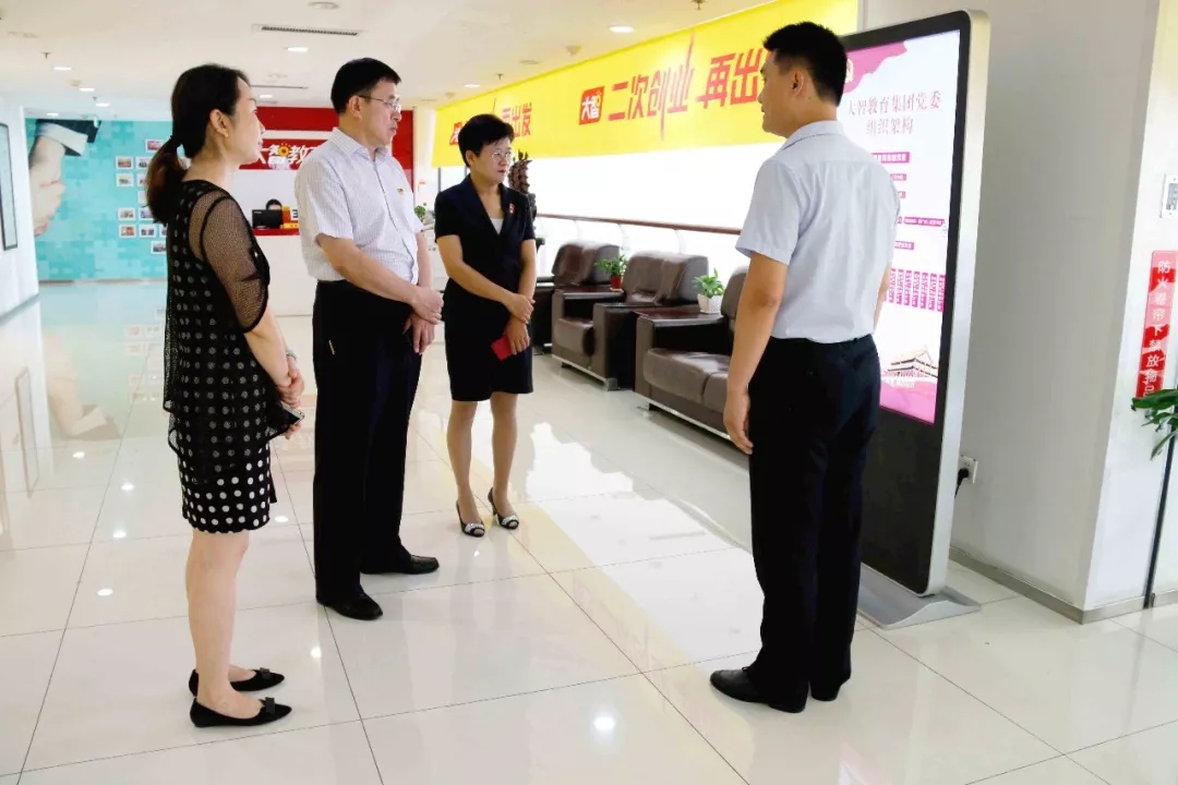 08月16日,濟(jì)南市歷下區(qū)燕山街道黨建辦主任李振清一行蒞臨大智教育集團(tuán)考察交流黨建工作。大智教育集團(tuán)黨委委員常廣成熱情接待?!私獯笾墙逃?..