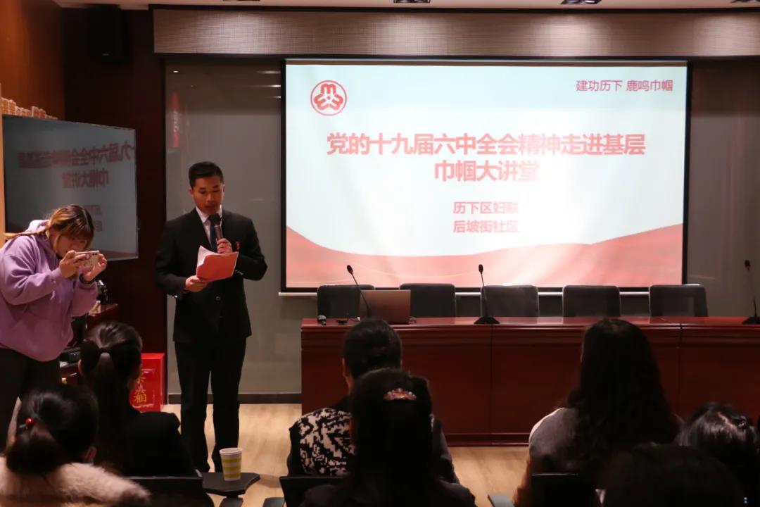 為深入學(xué)習(xí)十九屆六中全會精神,不斷推進基層婦聯(lián)學(xué)習(xí)教育走深走實,堅定理想信念,增強使命擔(dān)當(dāng),提升基層婦女理論水平,引領(lǐng)廣大婦女聽黨話,跟黨走,全面提高素質(zhì),促進婦女人才成長,11月19日,“建功歷下 鹿鳴巾幗”理論宣講團走進濟南市歷下區(qū)解放路街道后坡街社區(qū)開展“黨的十九屆六中全會精神走進基層巾幗大講堂”主題宣講活動,此次活動由濟南大智教育承辦。