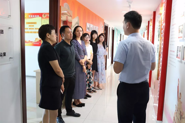 07月24日,山東中醫(yī)藥大學(xué)團(tuán)委書記陳眾一行蒞臨大智參觀交流黨團(tuán)工作。大智教育集團(tuán)黨委書記王現(xiàn)芹、團(tuán)委書記常廣成熱情接待。