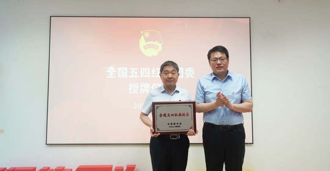團(tuán)省委副書記張守珩為大智控股集團(tuán)團(tuán)委頒發(fā)“全國五四紅旗團(tuán)委”獎(jiǎng)牌。