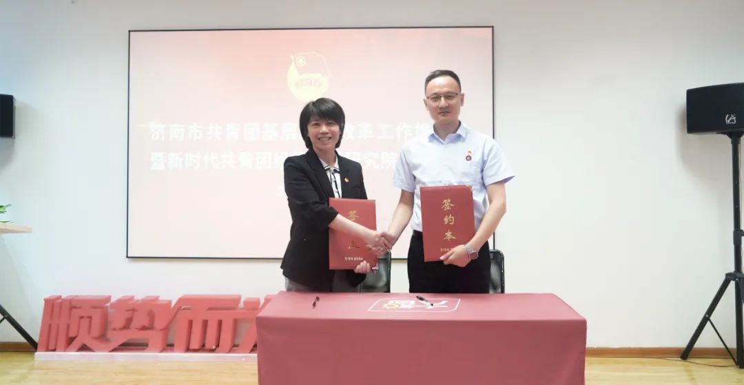 歷下區(qū)團(tuán)委書記羅茜與研究院院長昌舉岡共同簽訂《合作協(xié)議》。