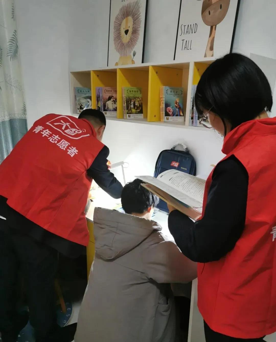 志愿者幫助孩子檢查寒假作業(yè)