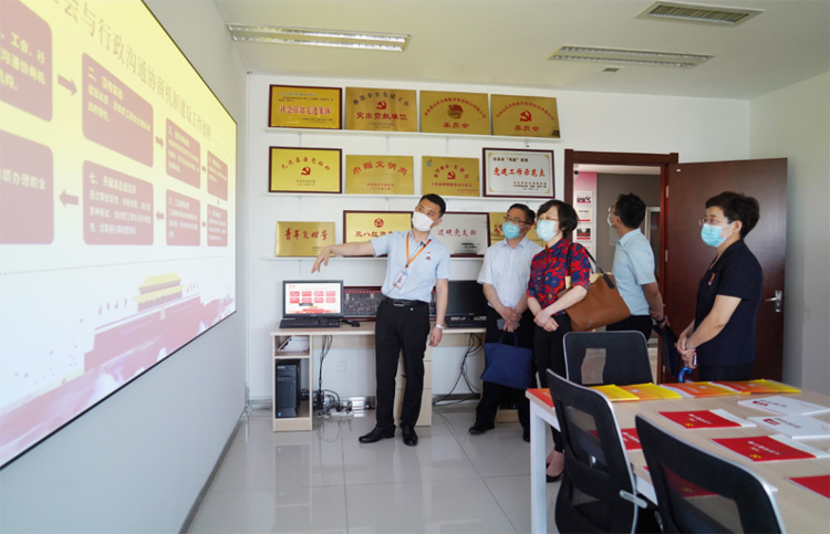 06月03日,山東省委組織部組織二處四級(jí)調(diào)研員朱曉峰、濟(jì)南市總工會(huì)副主席劉祖亭及省調(diào)研組、濟(jì)南市總工會(huì)的相關(guān)同志蒞臨大智調(diào)研企業(yè)民主管理情況。大智控股集團(tuán)黨委書記王現(xiàn)芹、工會(huì)主席常廣成熱情接待。